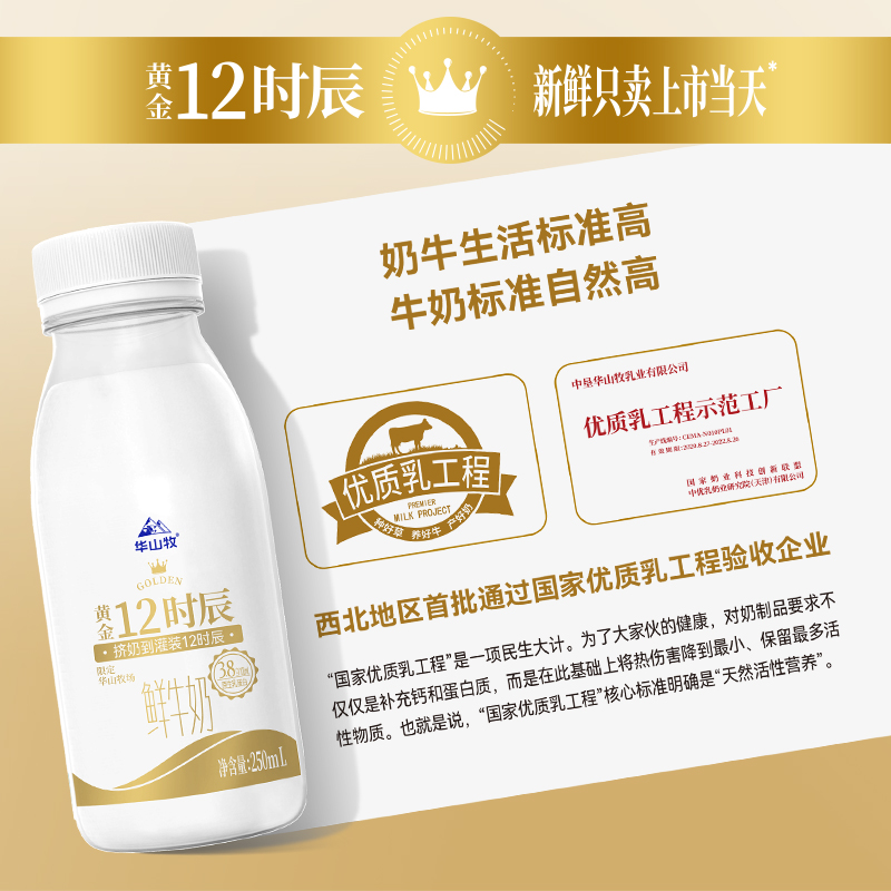 华山牧鲜牛奶3.8g蛋白瓶装低温奶冷链发货新鲜日期营养奶早餐奶