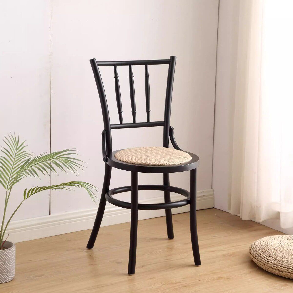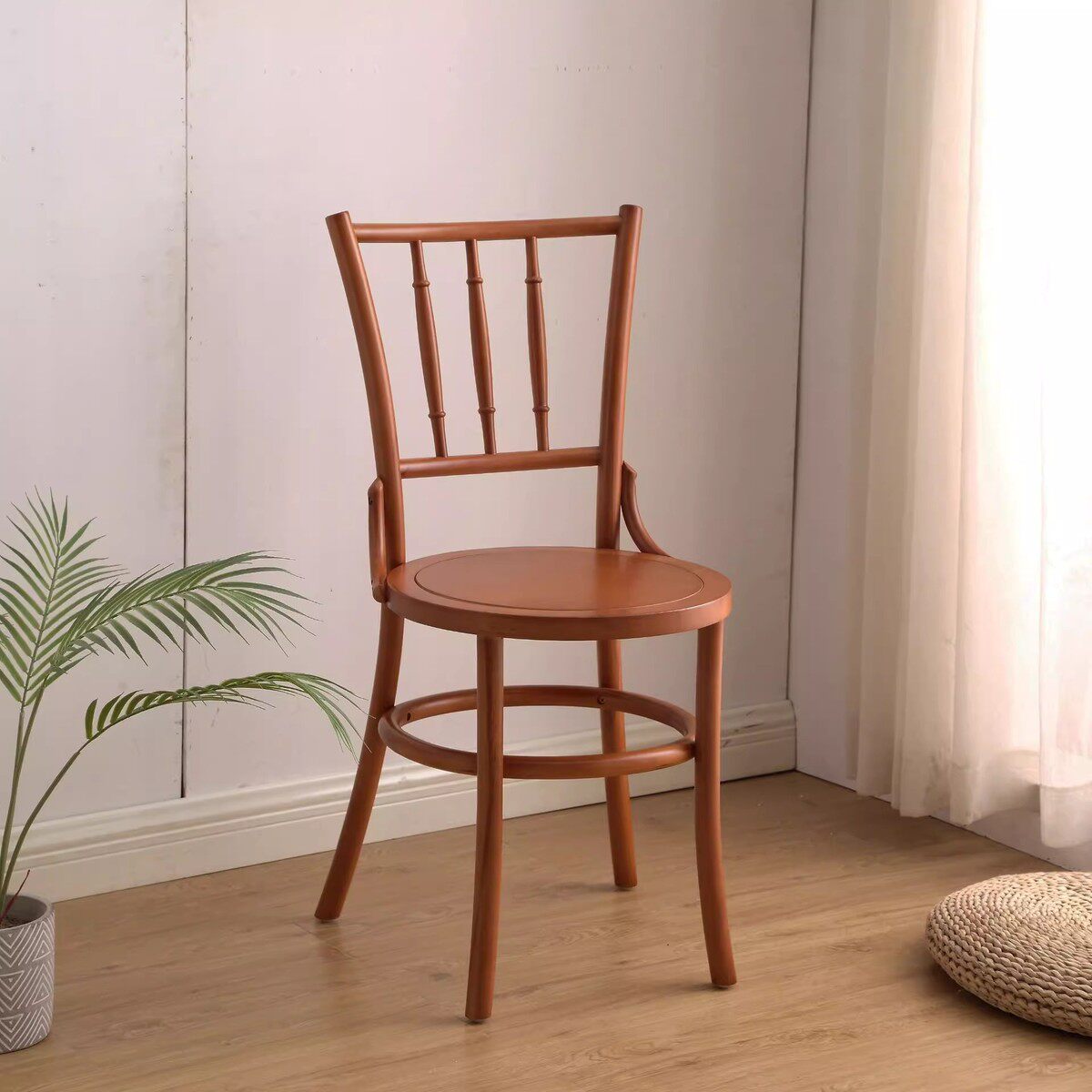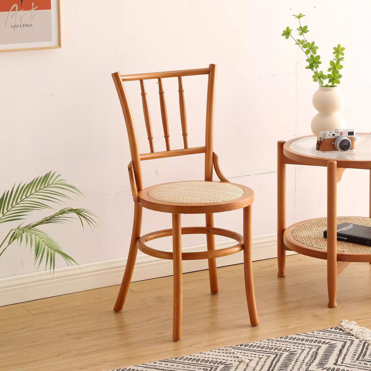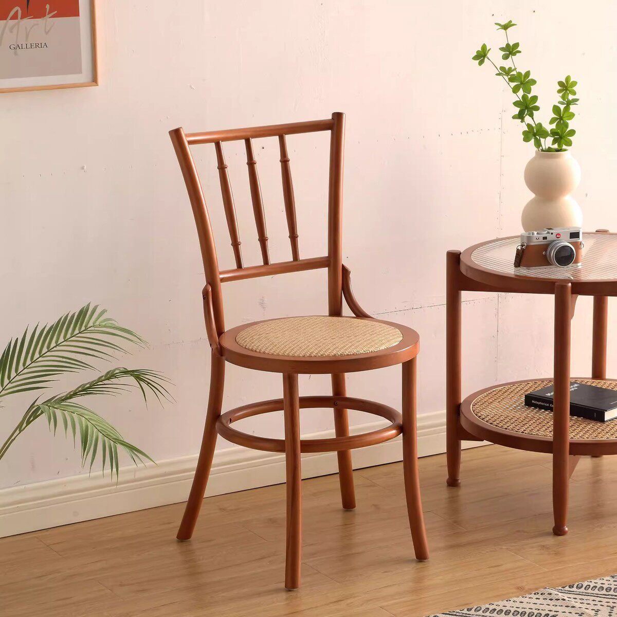 藤编实木餐椅椅子凳子靠背椅法式中古风餐桌椅美式复古索耐特椅