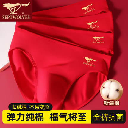 七匹狼本命年内裤男士纯棉大红色三角裤头男生全棉马年短裤衩男款