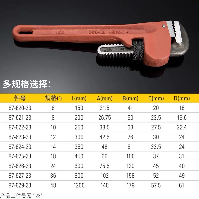 史丹利水管钳多功能扳手钳子家用自紧活动水管钳管道钳安装钳