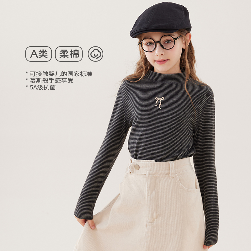 多妙屋半高领女童打底衫长袖T恤