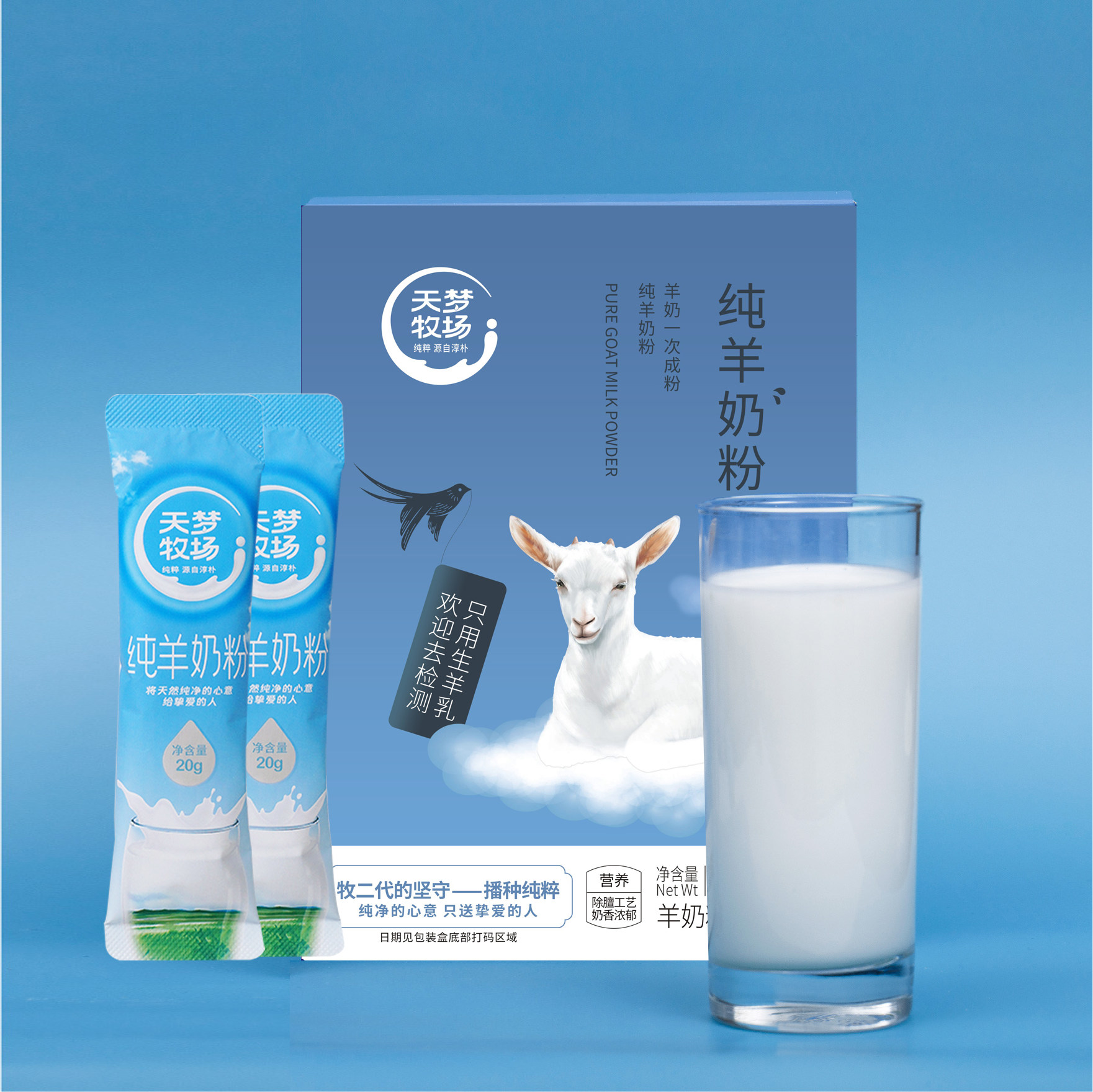 天梦牧场 原生高钙高蛋白质 纯羊奶粉120g(20g*6条)袋装