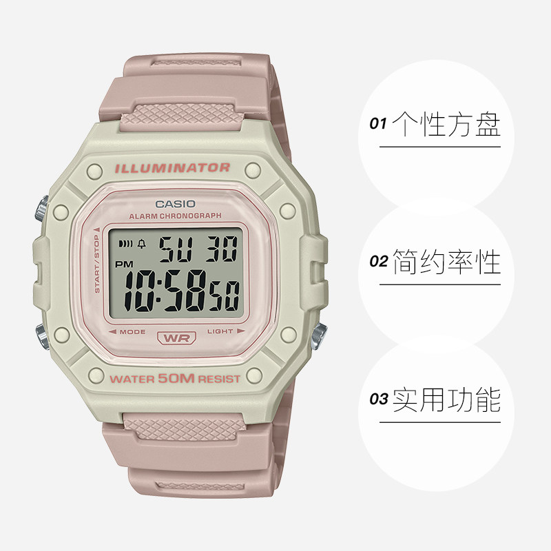 【自营】Casio卡西欧 运动防水时尚复古潮流男士石英手表 W-218H