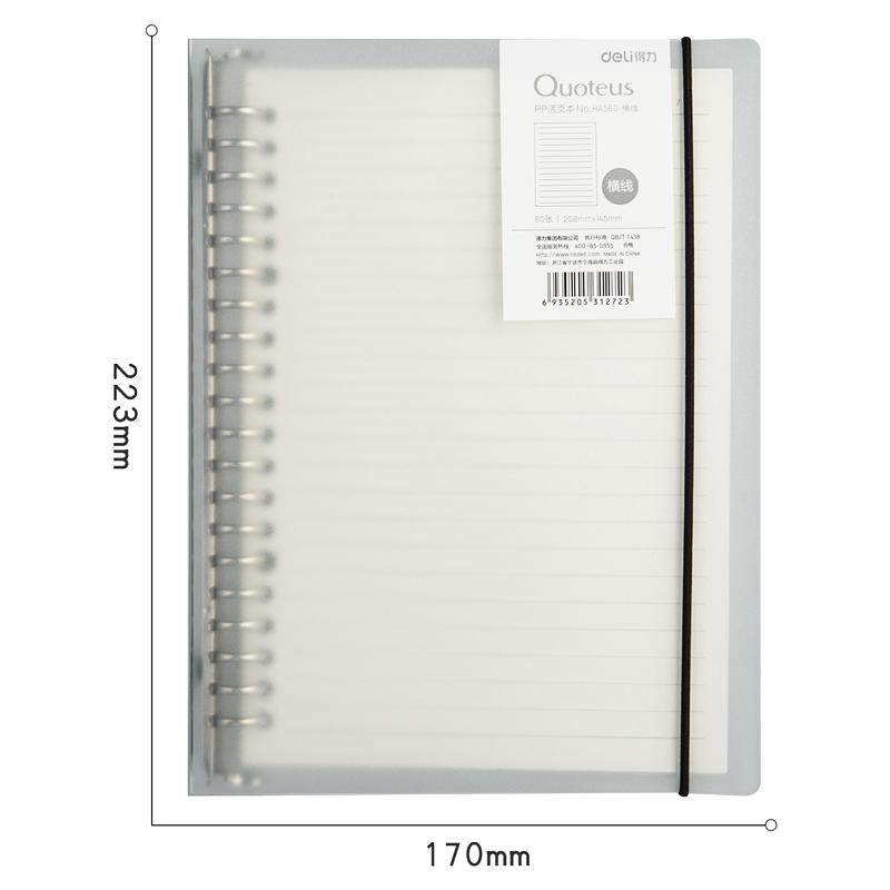 得力文具活页本A5笔记本子简约大学生文艺精致创意加厚B5记事本课堂笔记商务横线方格本螺旋笔记本120页