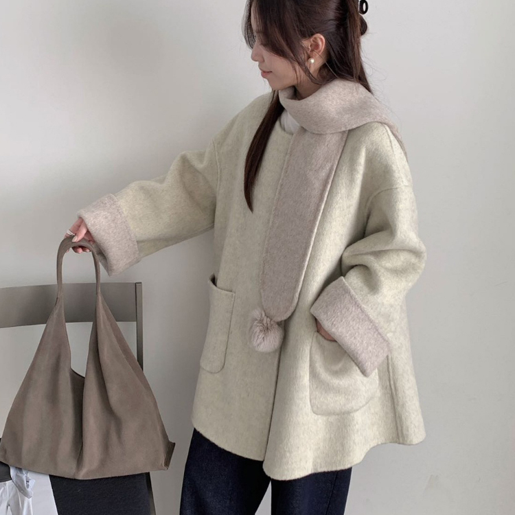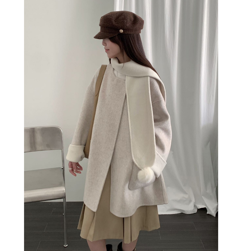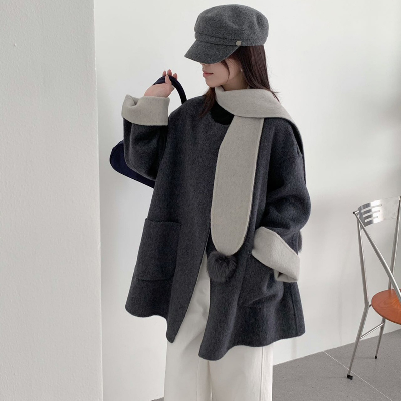 双面羊绒大衣女韩系复古围巾双色羊毛外套秋冬百搭宽松中长款火爆