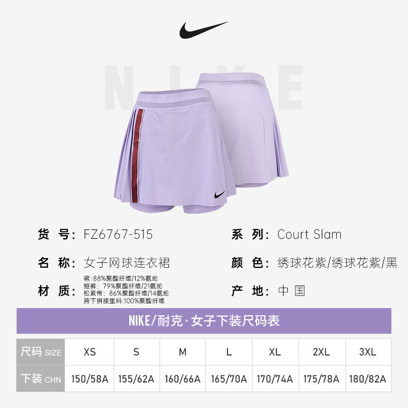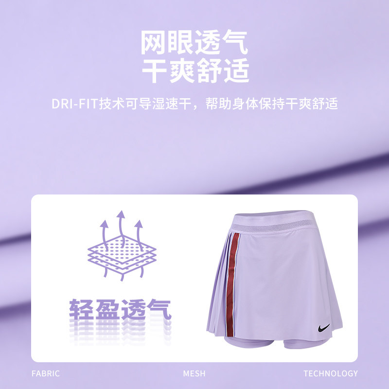 Nike网球运动百褶裙女 耐克法网郑钦文同款防走光a字短裙网球服