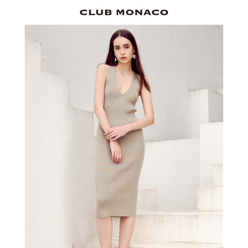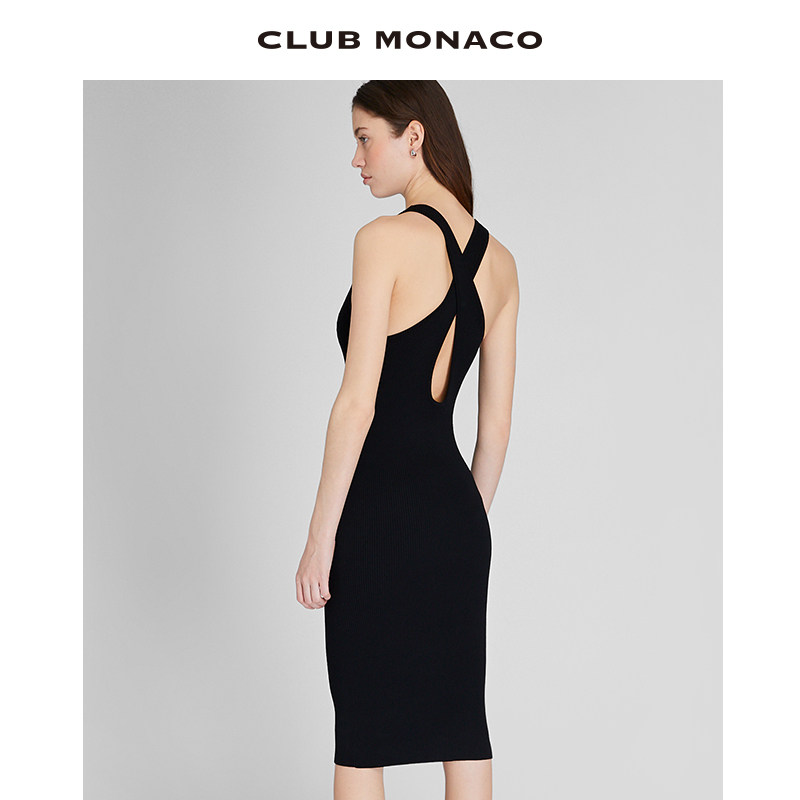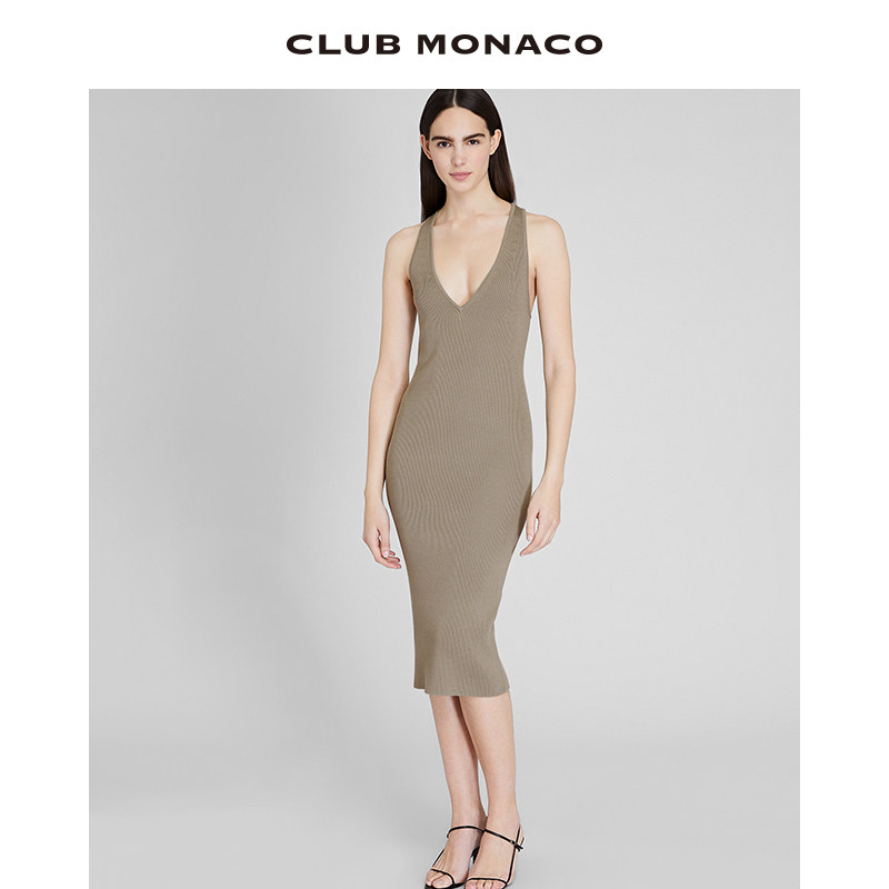CLUB MONACO女装V领交叉修身性感针织吊带连衣裙