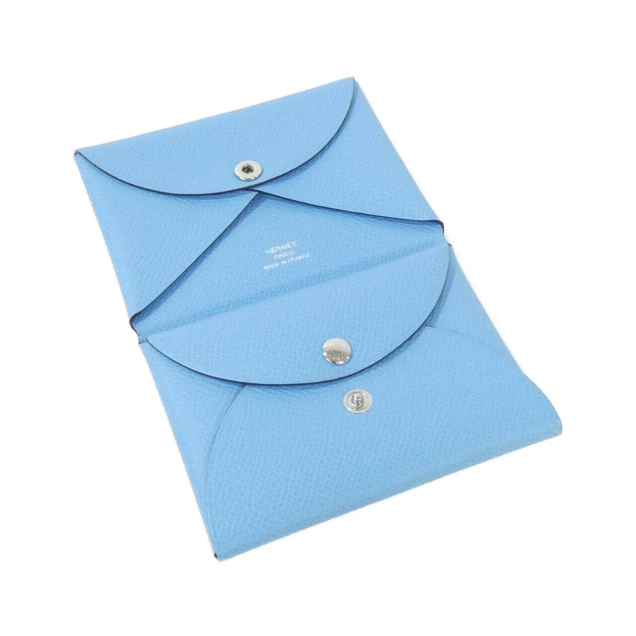 中古Hermes爱马仕A级95新CALVI DUO钱包硬币包天蓝色卡包