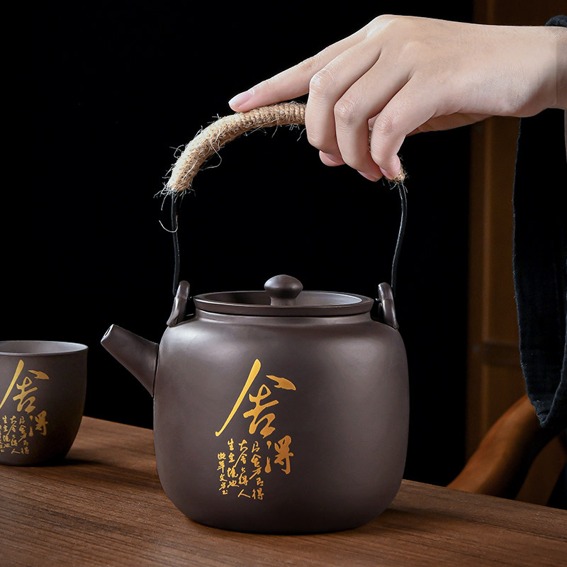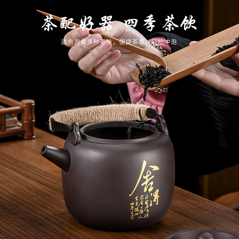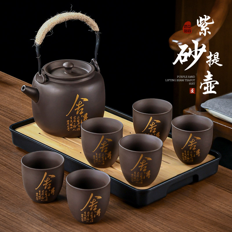 紫砂壶提梁壶家用茶壶茶杯中式复古陶瓷泡茶壶大容量功夫茶具套装