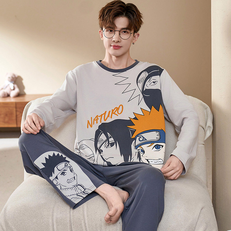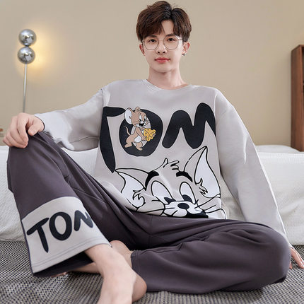 睡衣男春秋季长袖纯棉卡通青少年秋天薄款全棉初中学生家居服套装