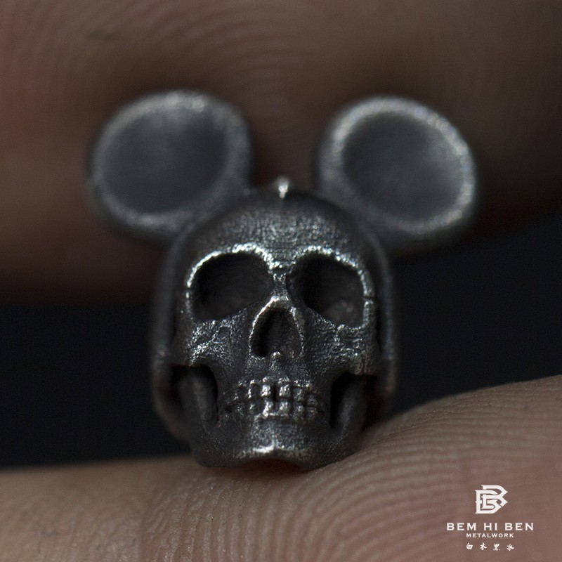 白木黑冰原创设计手工银饰杀死迪斯尼耳钉925银米奇骷髅耳环男女