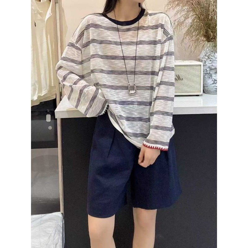 欧洲站2025夏季新款欧货女装宽松时尚休闲百搭纯色设计感长袖上衣