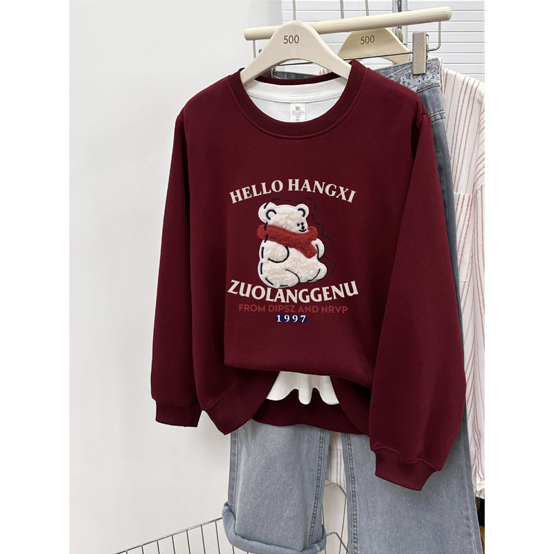 洋气圆领百搭正肩卫衣女秋冬季2025新款韩版宽松大码胖mm套头上衣