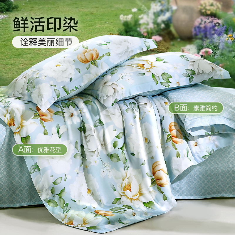 富安娜莱赛尔天丝四件套冰丝床单被套轻奢丝滑凉感床上套件夏季