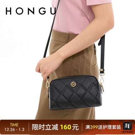 HONGU/红谷女包包菱格车缝线单肩斜跨包时尚纯色格纹零钱包休闲包