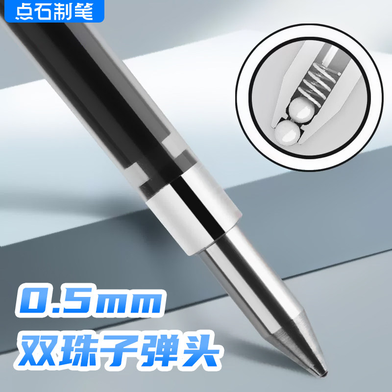 点石时空舱笔芯按动中性替芯DS1154学生用黑色0.5弹簧双珠按压式签字水笔替换芯批发顺滑速干笔芯太空舱笔芯