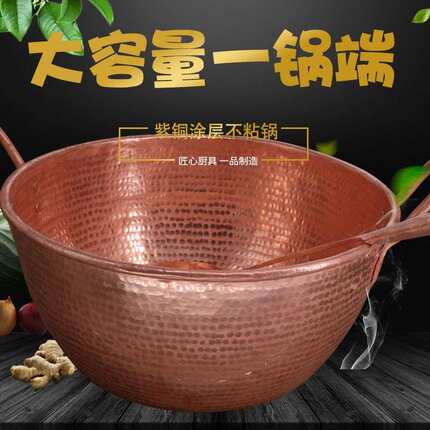 铜锅手工加厚多用锅双耳熬药锅熬汤熬果酱紫铜汤煲加深汤锅