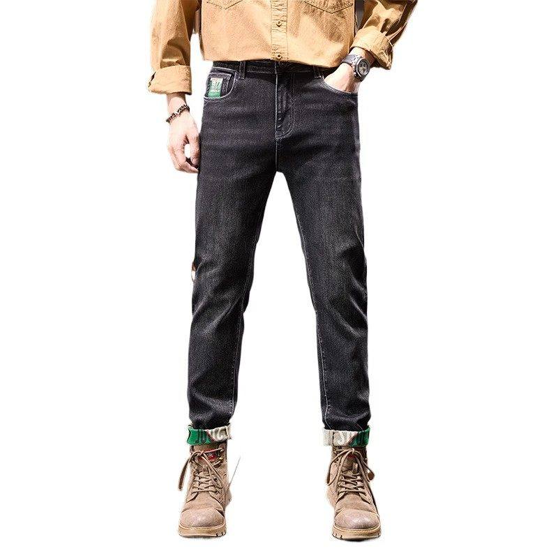Yishion以纯官方时尚正品加绒保暖牛仔裤男士款秋冬款修身直筒男