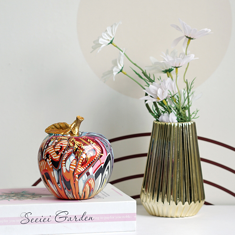 创意水转印涂鸦仿真苹果摆件轻奢家居客厅玄关电视柜水果场景装饰