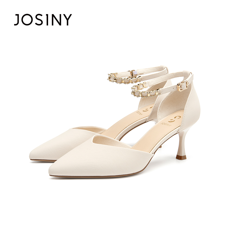 卓诗尼包头凉鞋女夏季新款百搭尖头浅口细跟一字扣单鞋女鞋