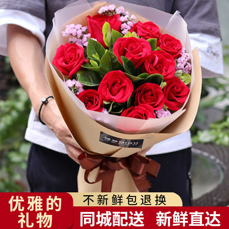 情人节全国鲜花速递红粉玫瑰礼盒花束送花合肥武汉深圳广州同城店