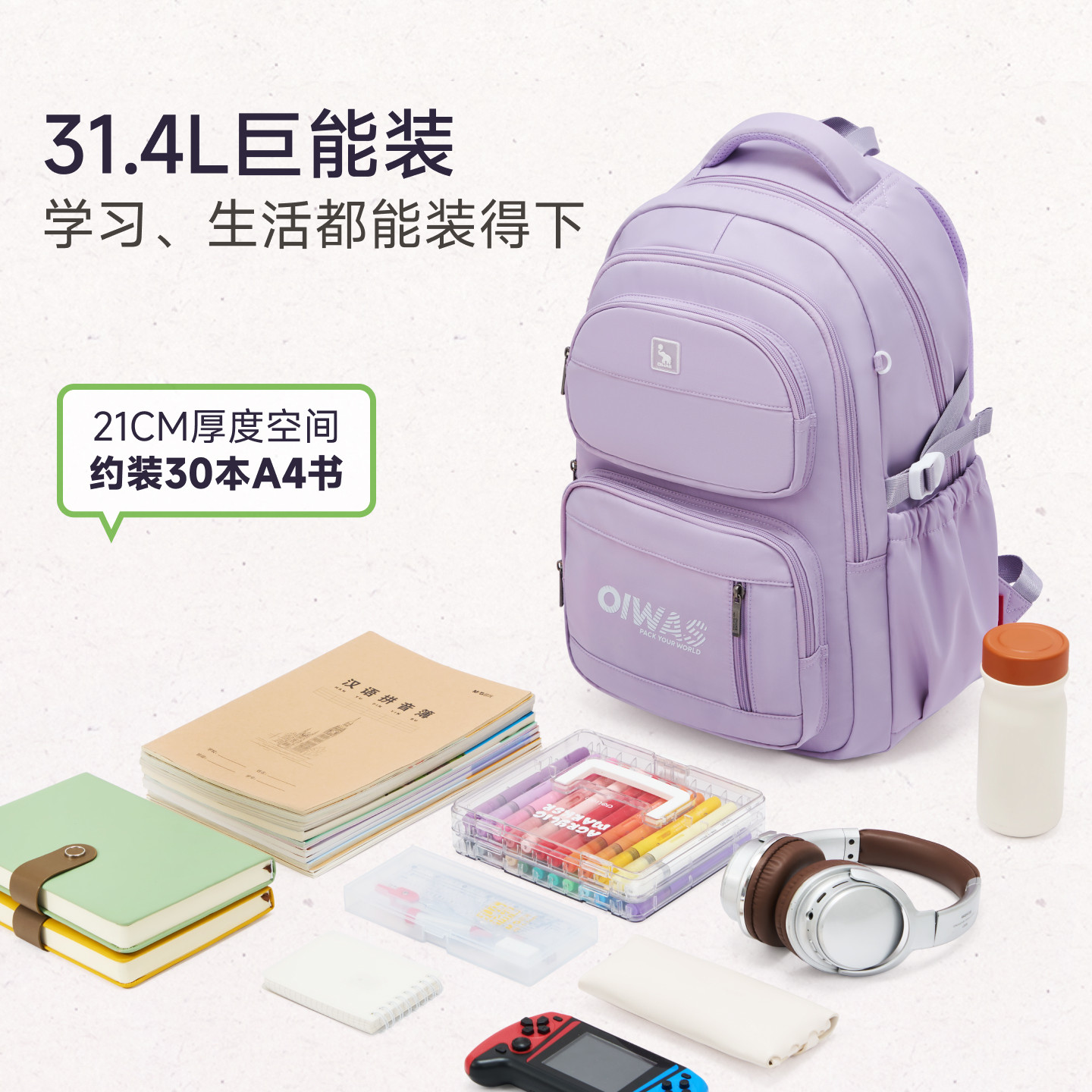 爱华仕漫游系列学生书包新款大容量超轻初高中学生双肩背包男女