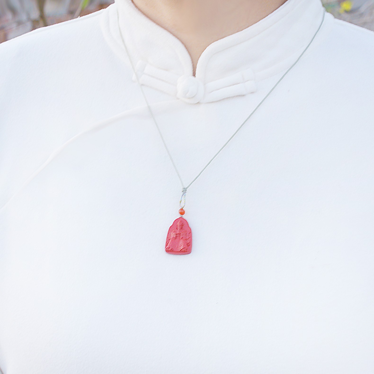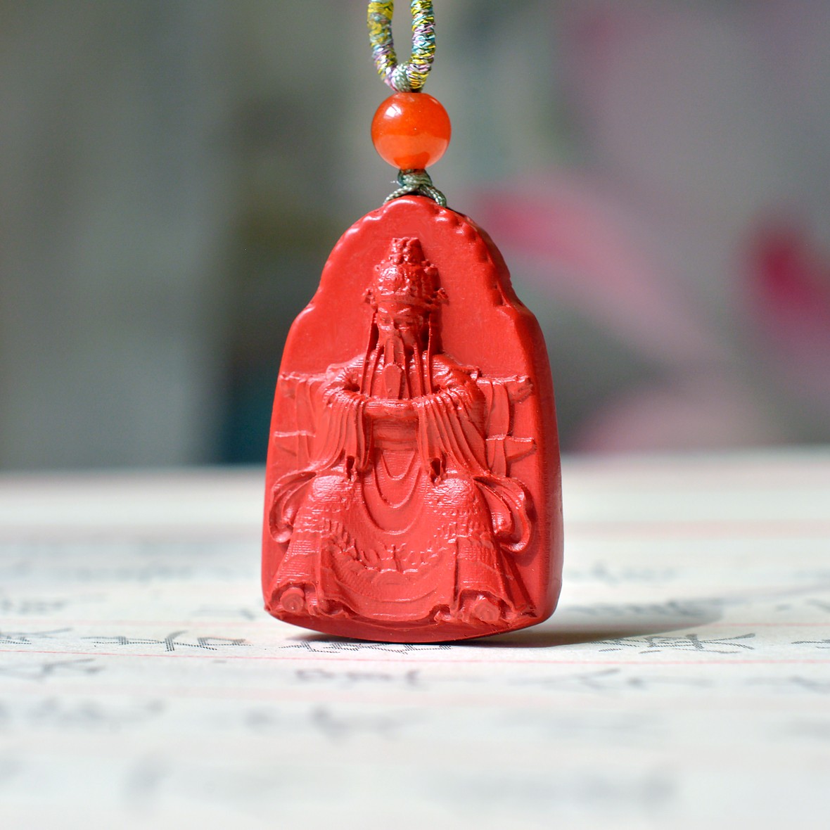 天然正品朱砂财神爷吊坠五爷显灵男女款本命年红砂挂件毛衣链礼物