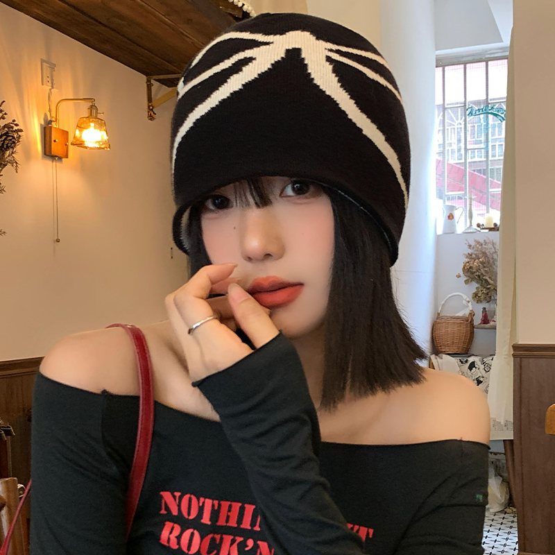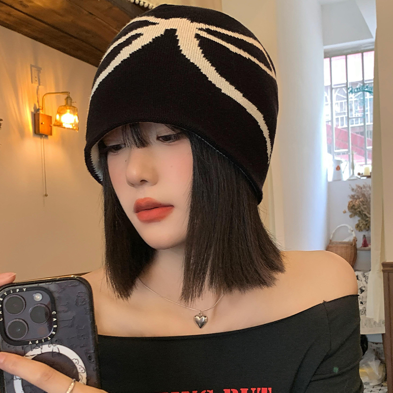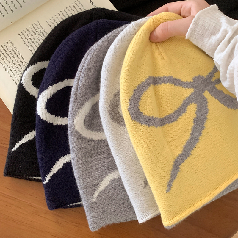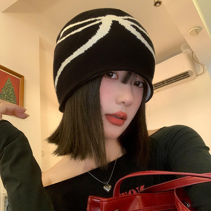 韩系蝴蝶结针织黑色冷帽女秋冬季