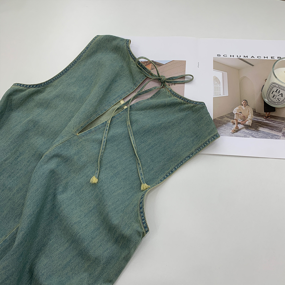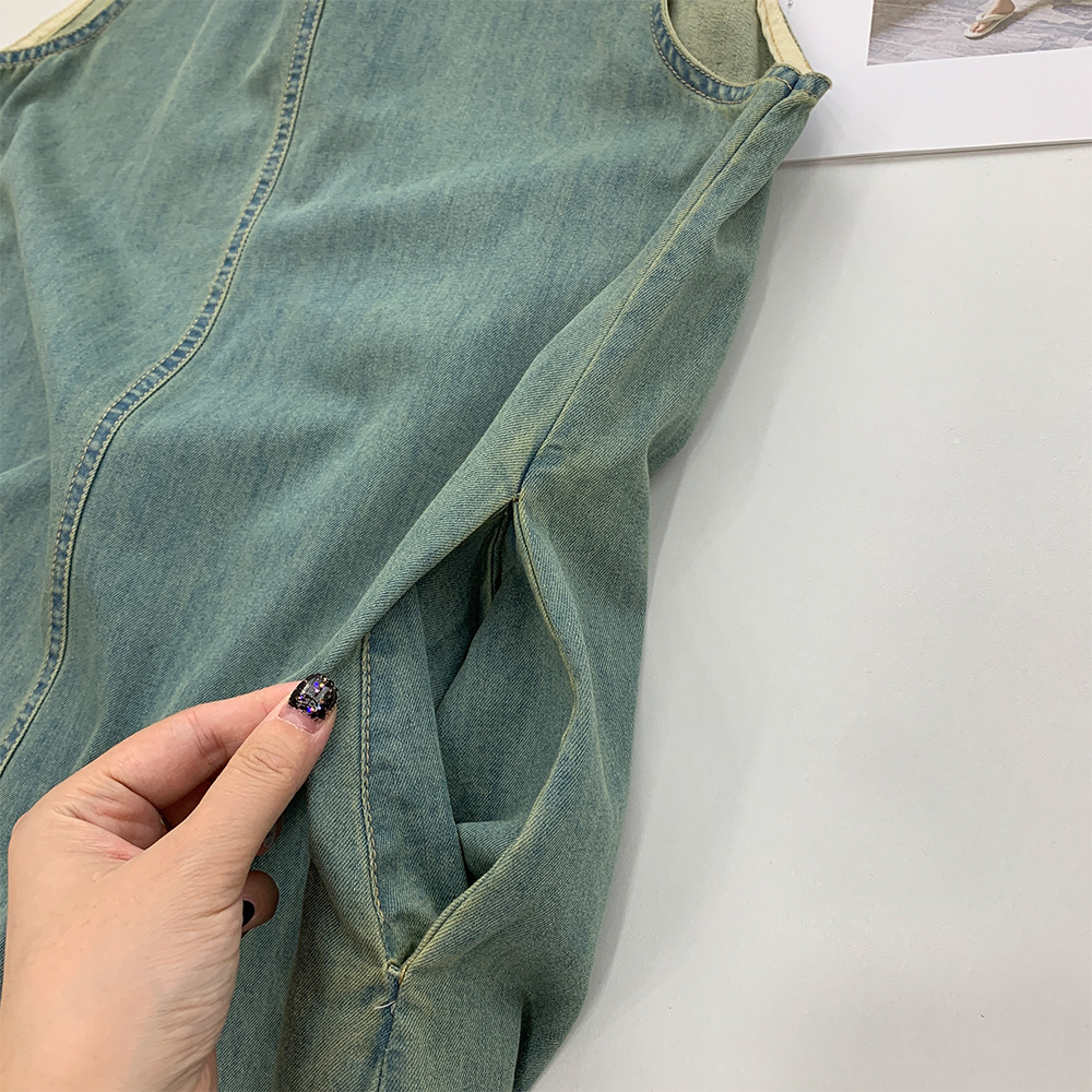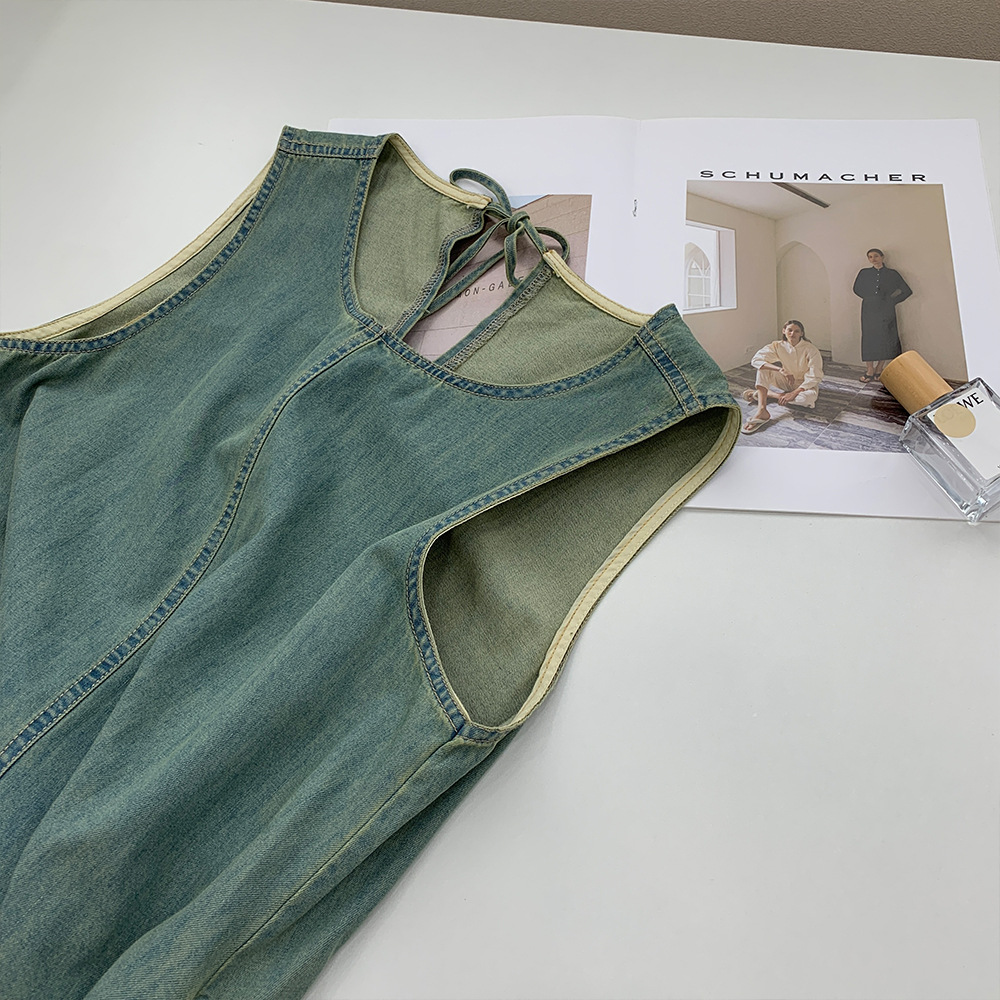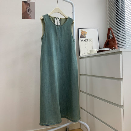 2023夏季新款高级百搭显瘦通勤无袖软牛仔背心连衣裙女送腰带配饰