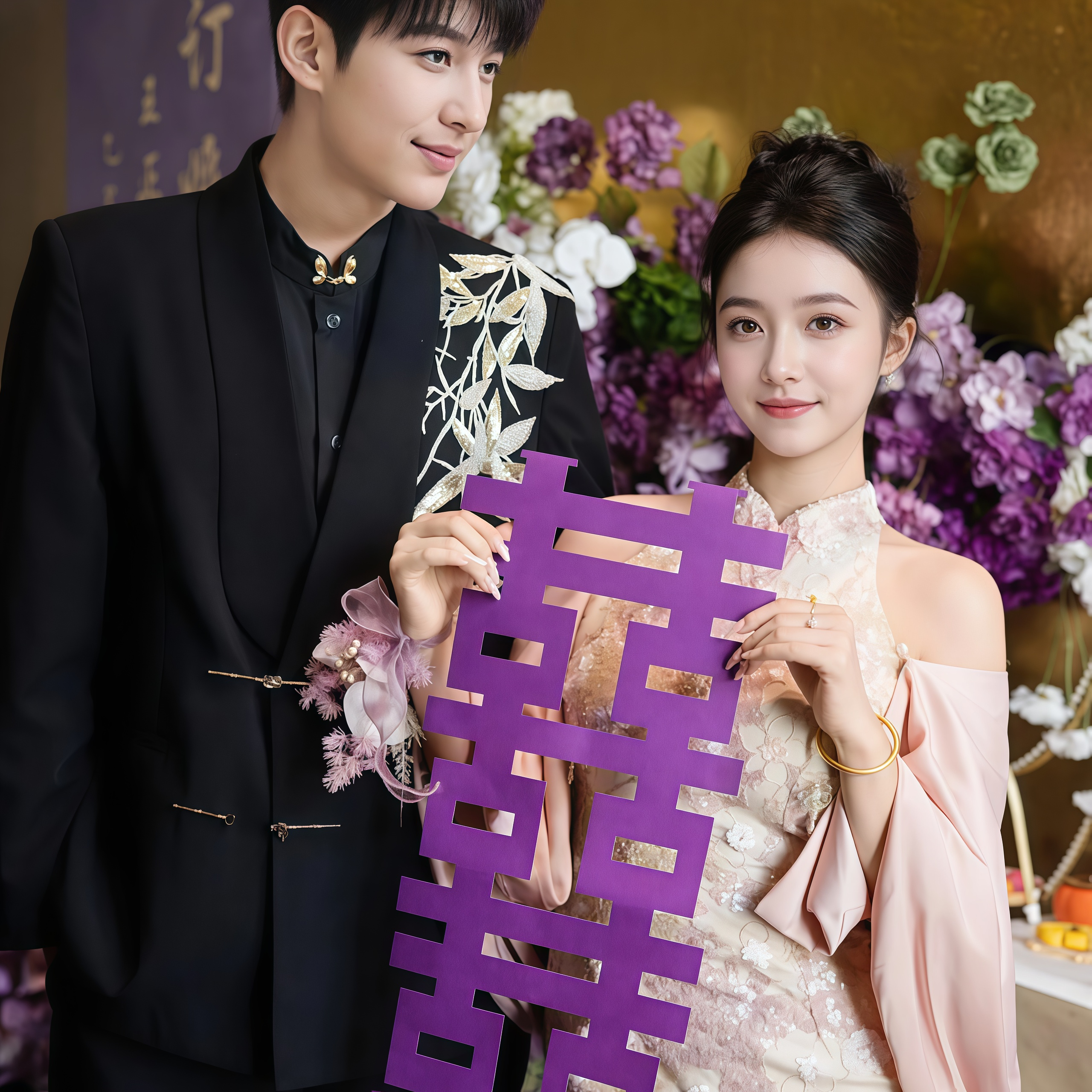 欢喜橙 轻奢高端大气男士套装国风套装结婚订婚礼服黑色新郎西装