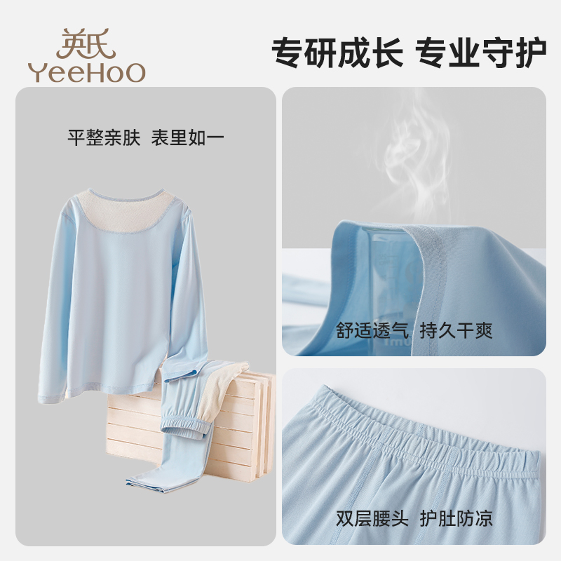 【单向导湿】英氏儿童秋衣秋裤男童女童中大童莫代尔保暖内衣套装