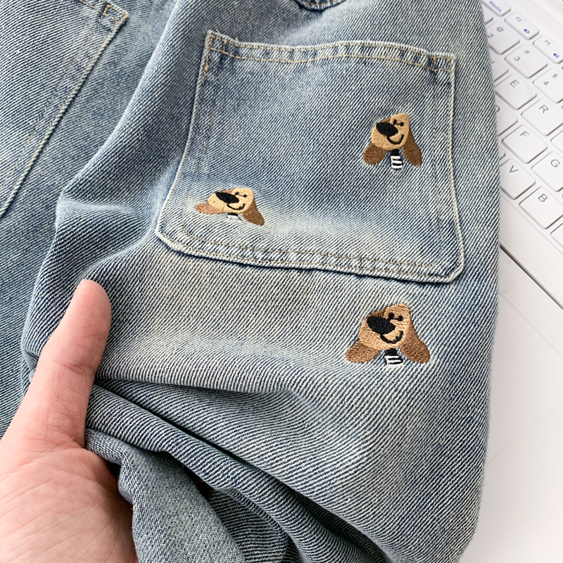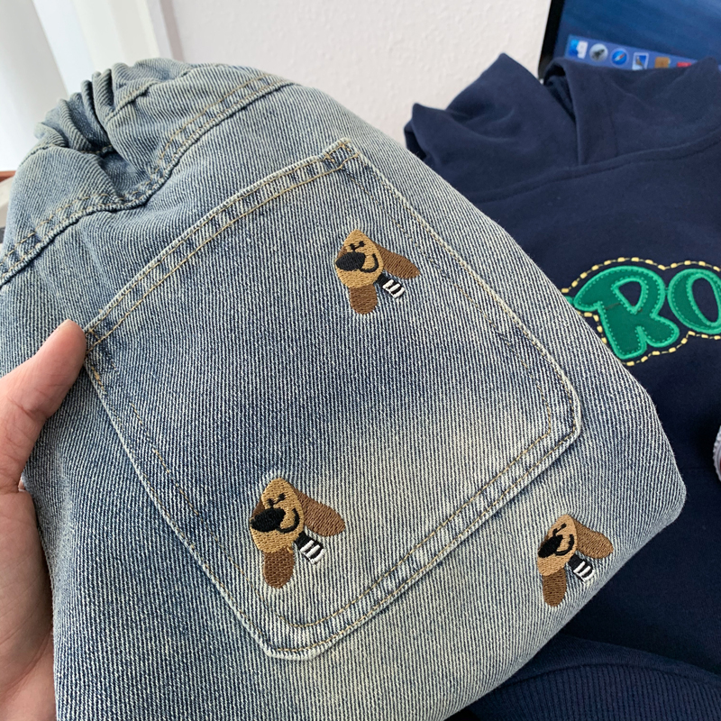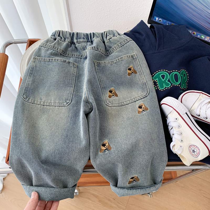 男女童牛仔裤2025春秋新款洋气中小童卡通裤子儿童时尚绣花长裤潮