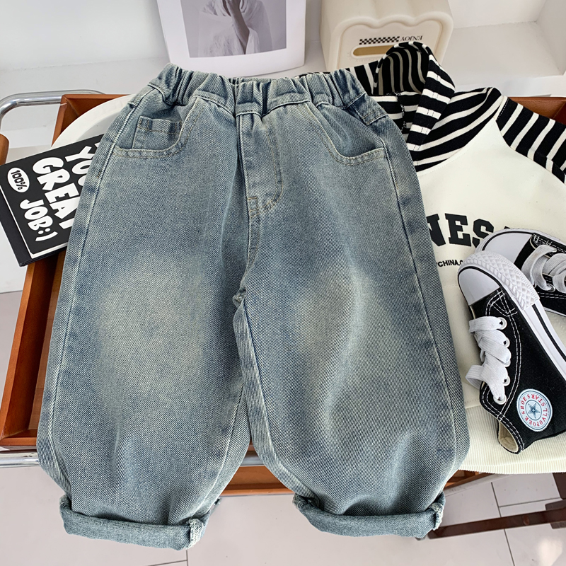 儿童春秋卡通洋气牛仔裤浅色裤子