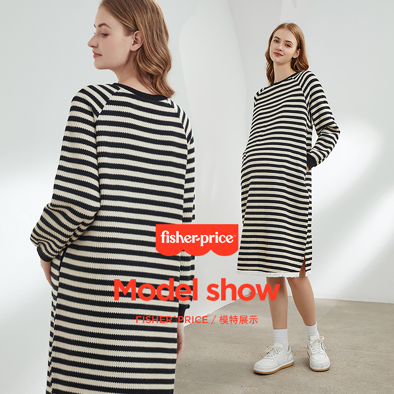 美国费雪孕妇春秋针织连衣裙2025新款韩版时尚宽松条纹毛衣裙秋装