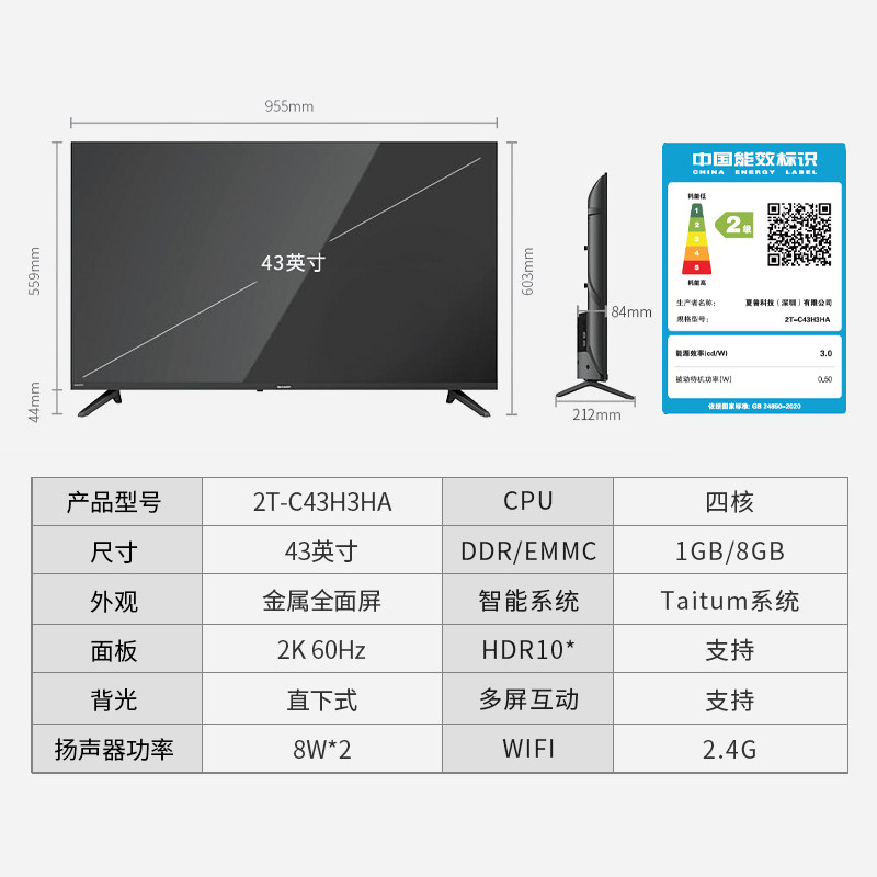SHARP/夏普43/42英寸高清智能网络家用全面屏液晶小电视机43H3