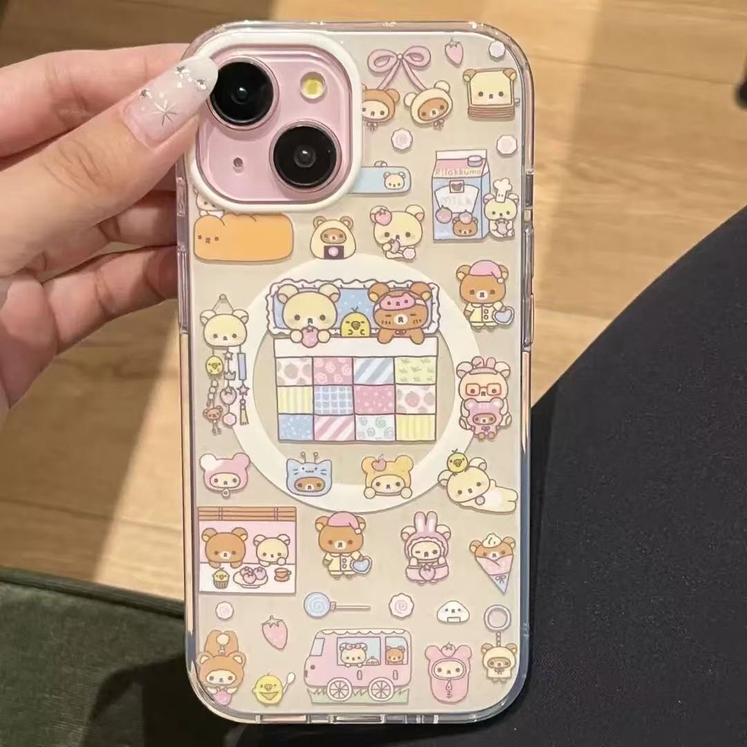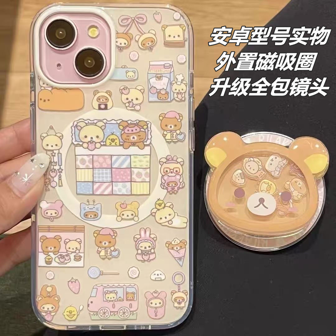 治愈轻松熊摇摇乐磁吸适用A3/A5PRO/OPPO findx9/X8/X7手机壳reno15/14/13f/12/11F可爱支架7SE/A56/A9女A2m