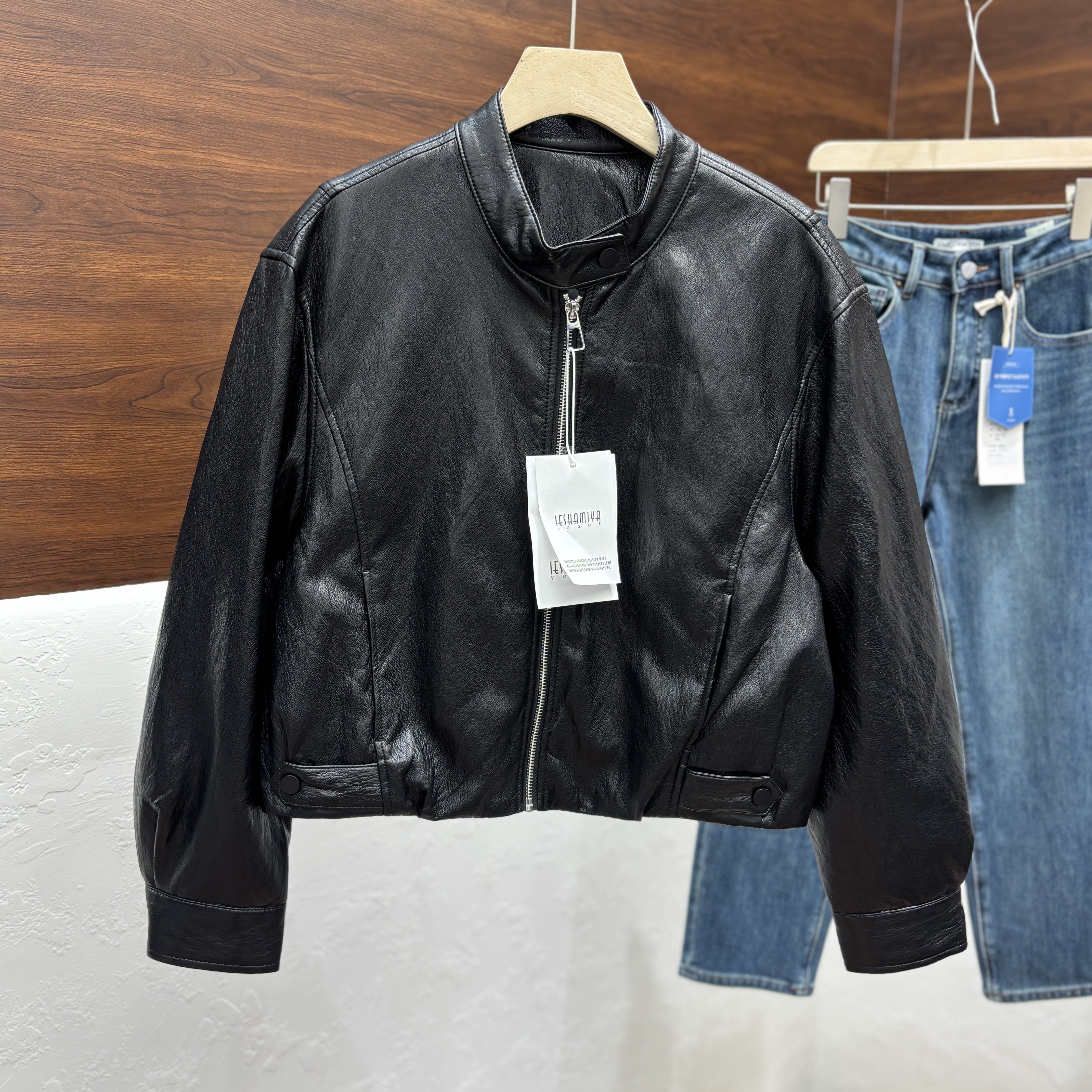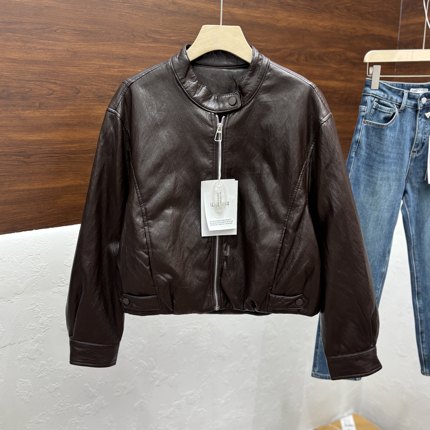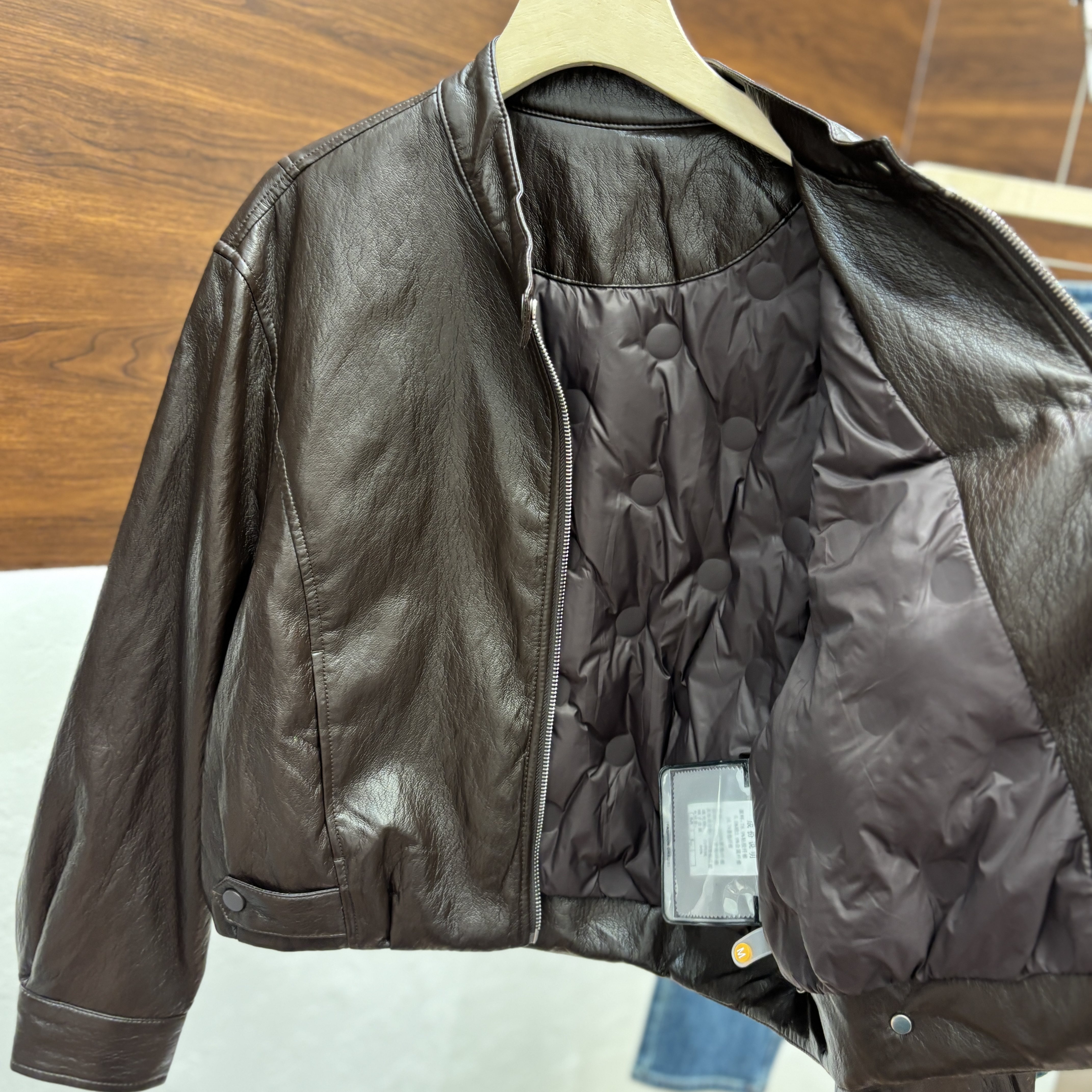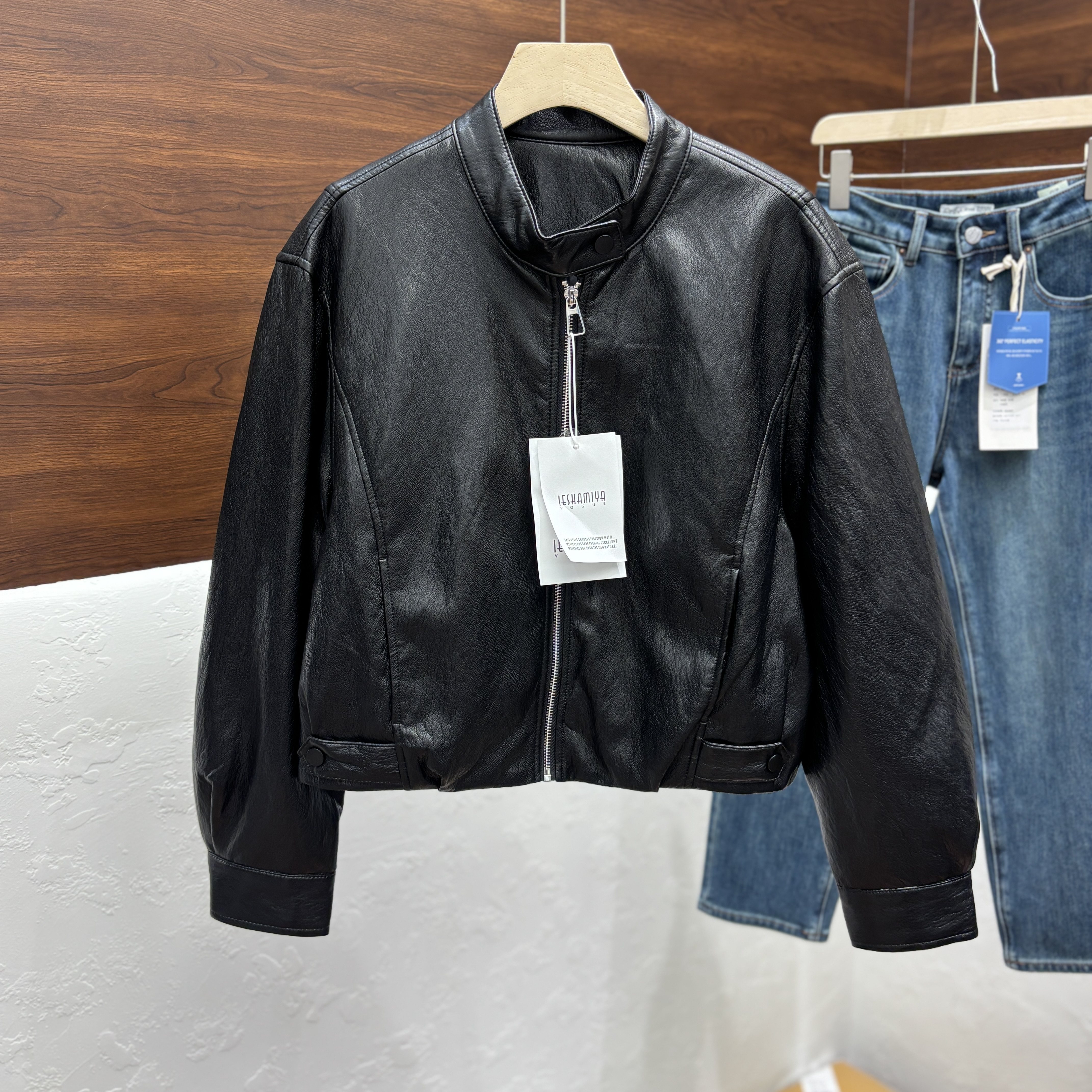 黑色立领皮衣夹克羽绒服女25冬宽松显瘦短款外套韩版机车服i25601