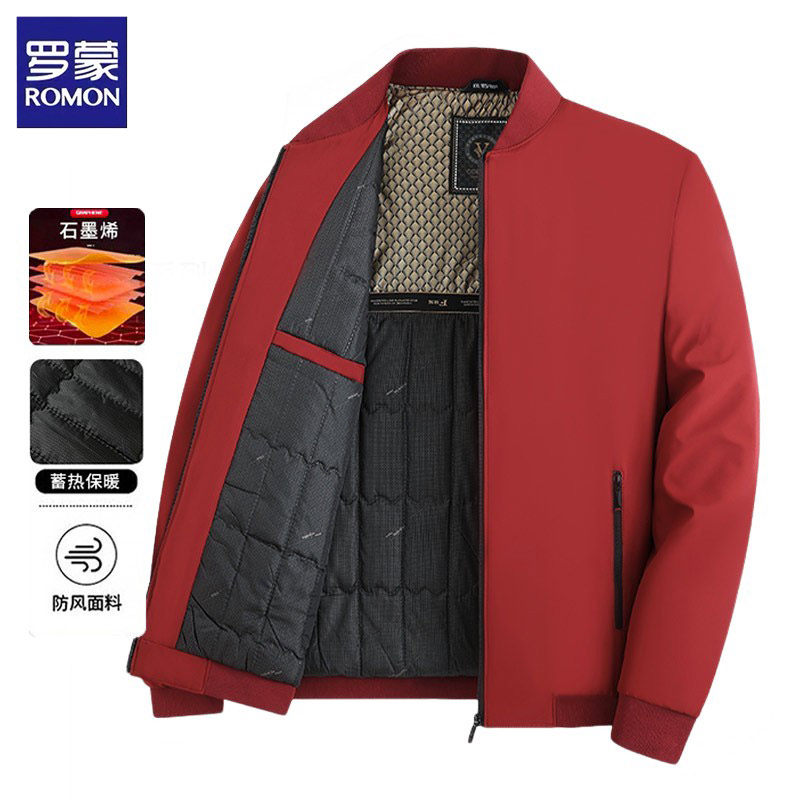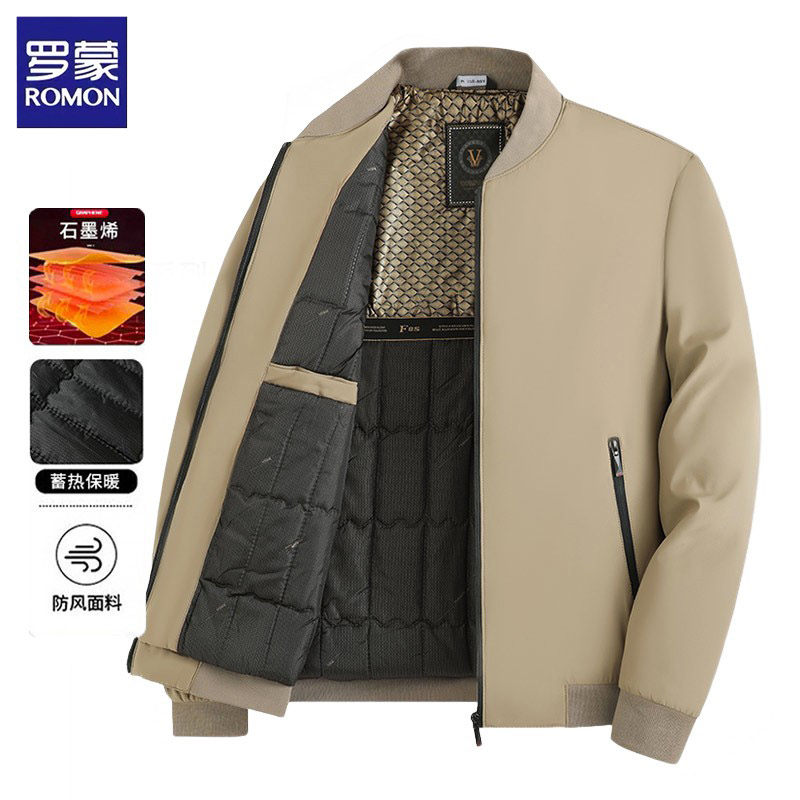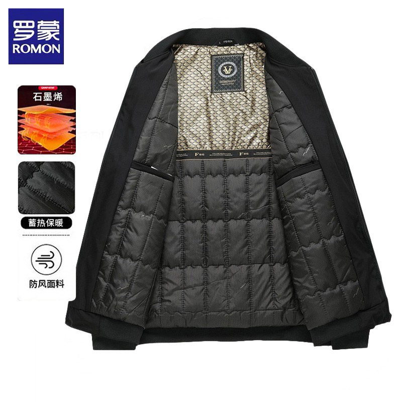 罗蒙石墨烯夹棉加厚棉衣外套男士冬季商务休闲保暖爸爸夹克棉服