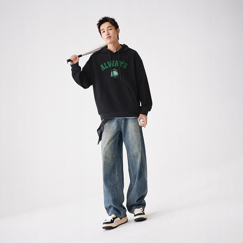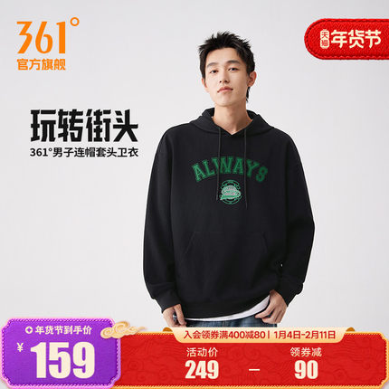 361运动卫衣男2025秋冬新款男士抓毛宽松连帽卫衣美式印花休闲服