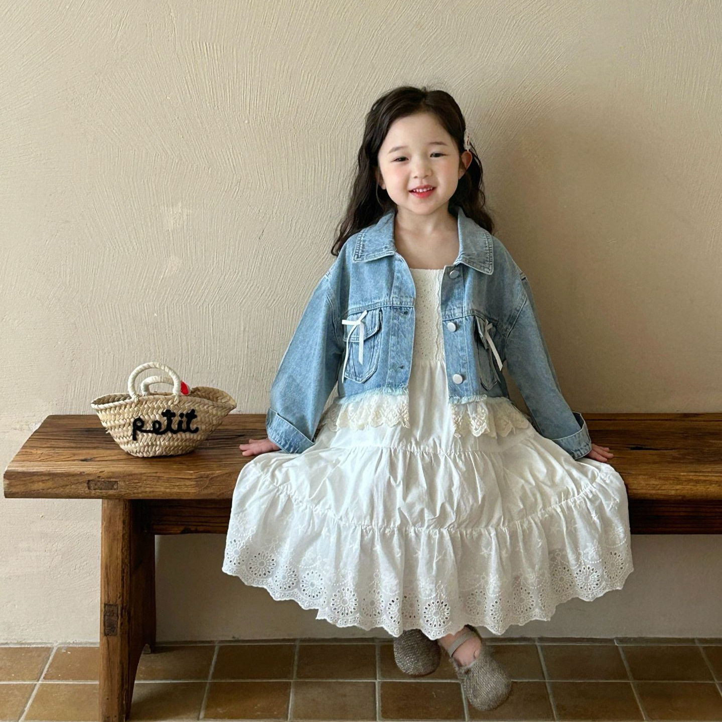 2025秋季新款童装 韩版童装 女童带花边蕾丝牛仔衫 浅色牛仔外套