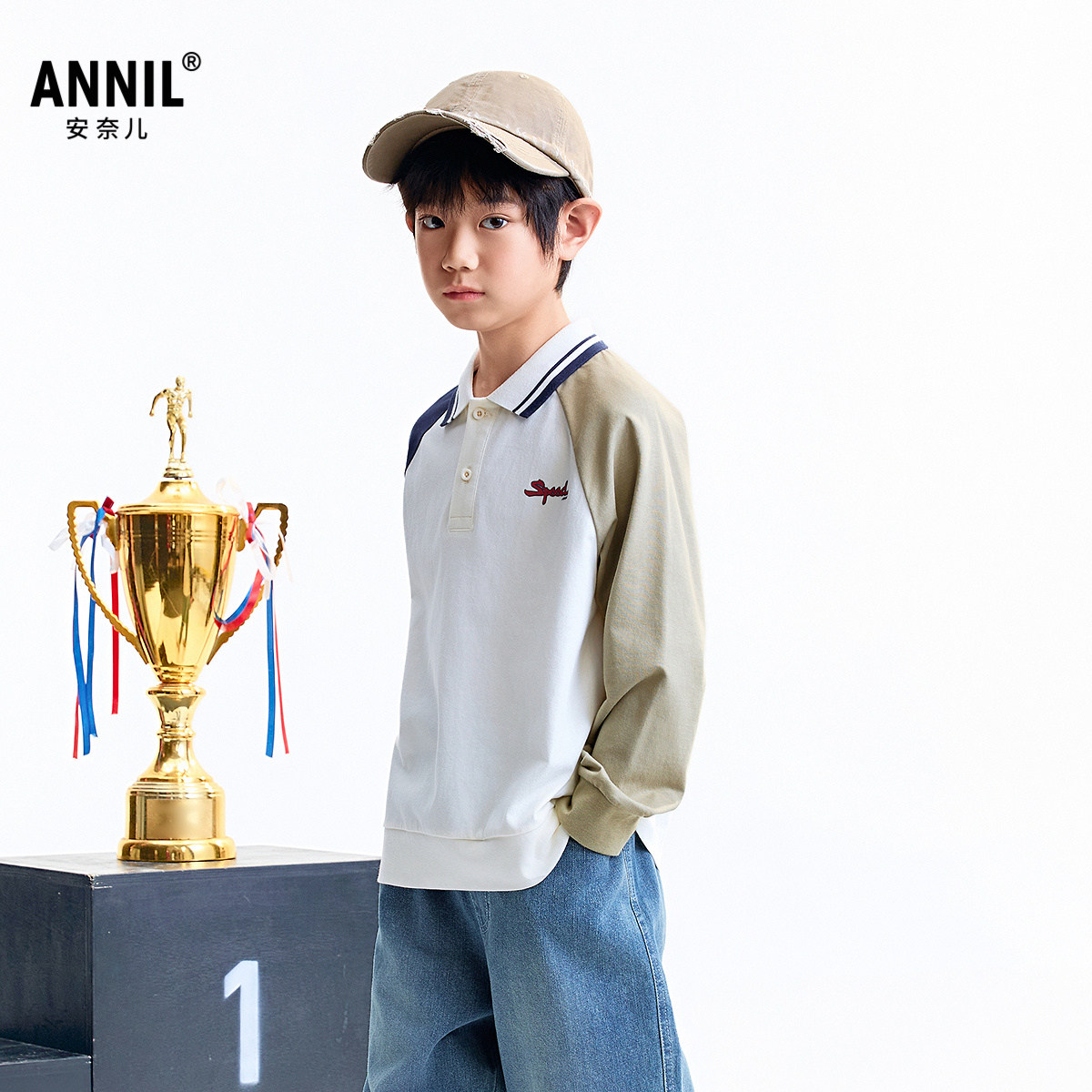 【商场同款】安奈儿童装男童翻领长袖POLO衫秋新款AB531116