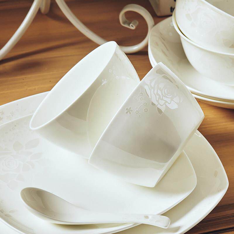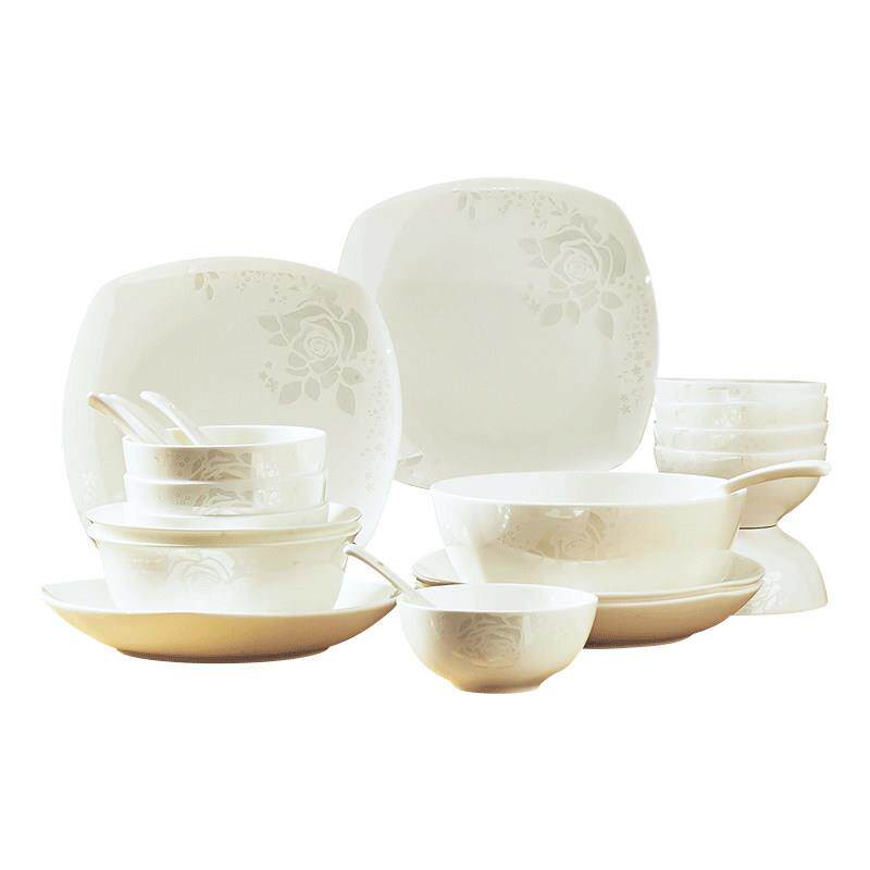 碗碟套装家用中式简约骨瓷碗盘碗具韩式清新景誉福陶瓷器28头餐具