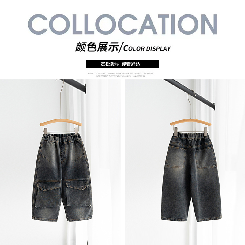 重工款!儿童工装裤春秋男童潮酷牛仔裤宝宝复古街舞直筒长裤韩版