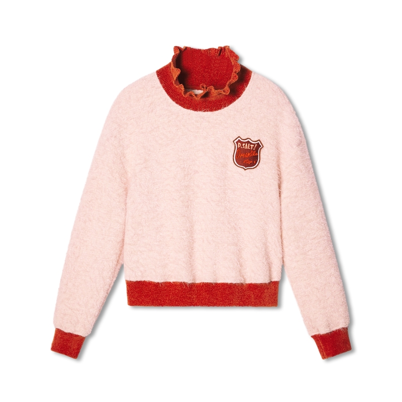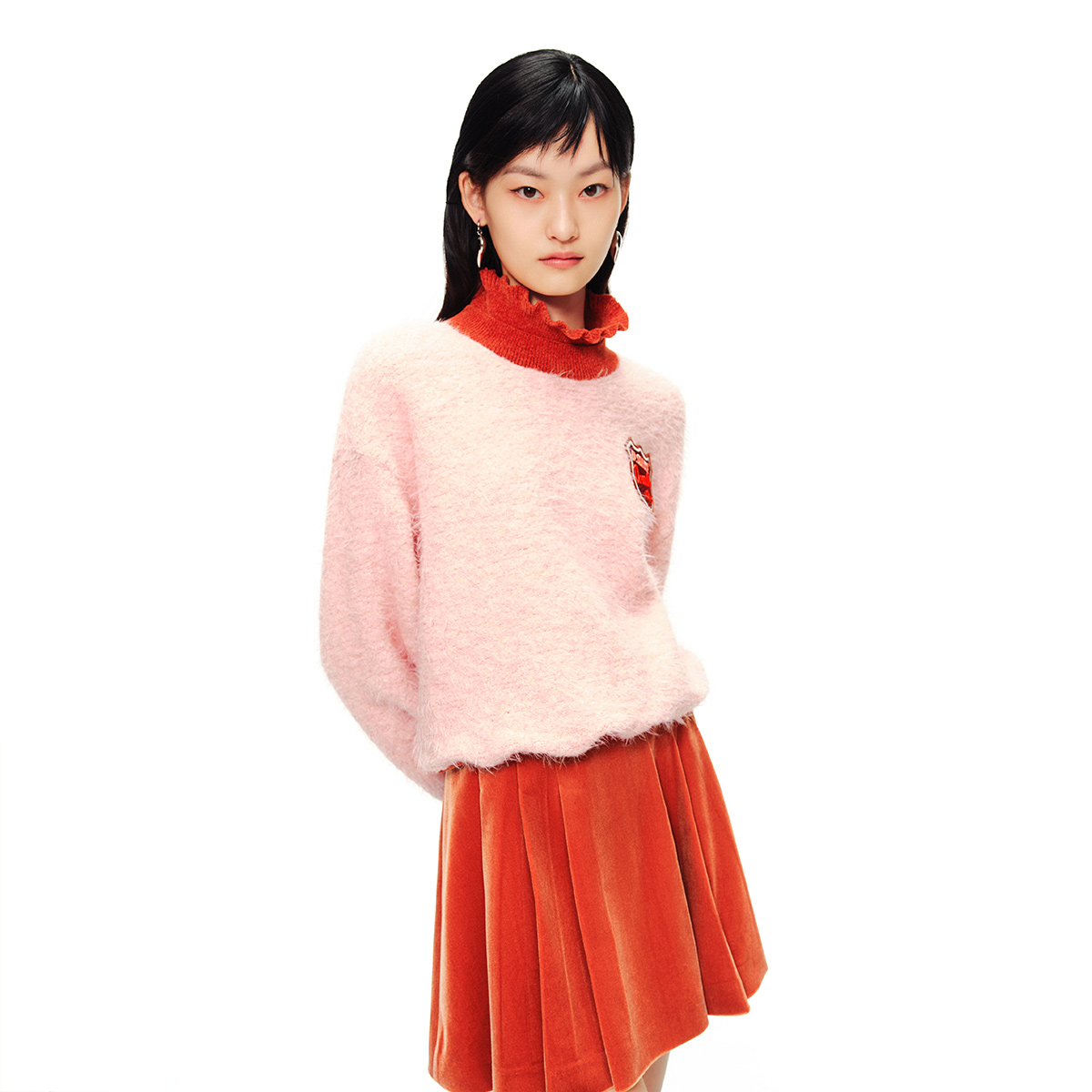 SALT.P可颜2024春学院风徽章撞色羽毛纱羊毛卫衣针织衫
