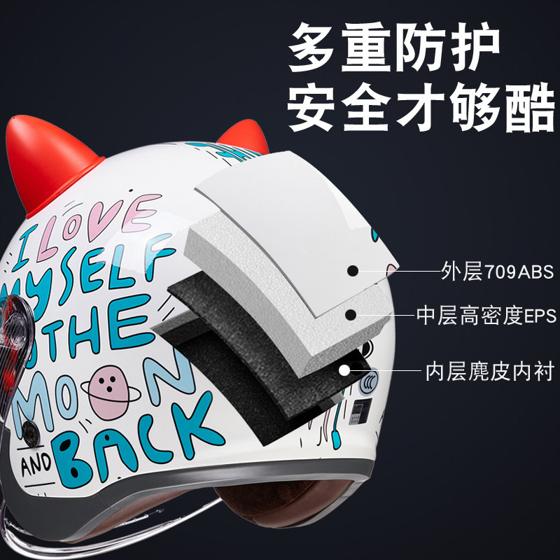 野马3C认证633S摩托电动车头盔灰男女冬季半盔四季通用电瓶车可爱