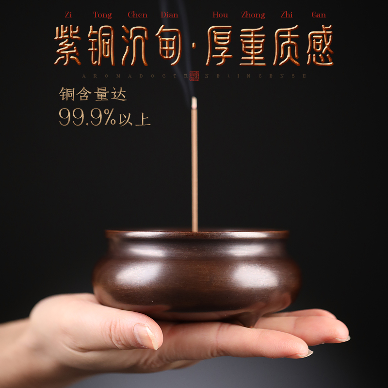紫铜三足香炉上香家用供奉供佛焚香铜香炉纯铜线香香插大明宣德炉