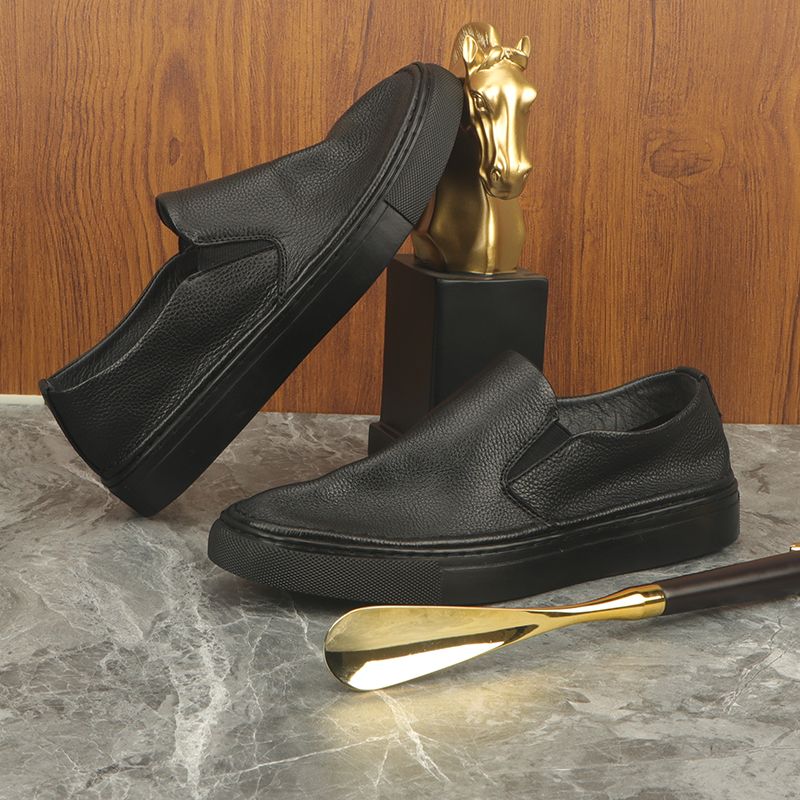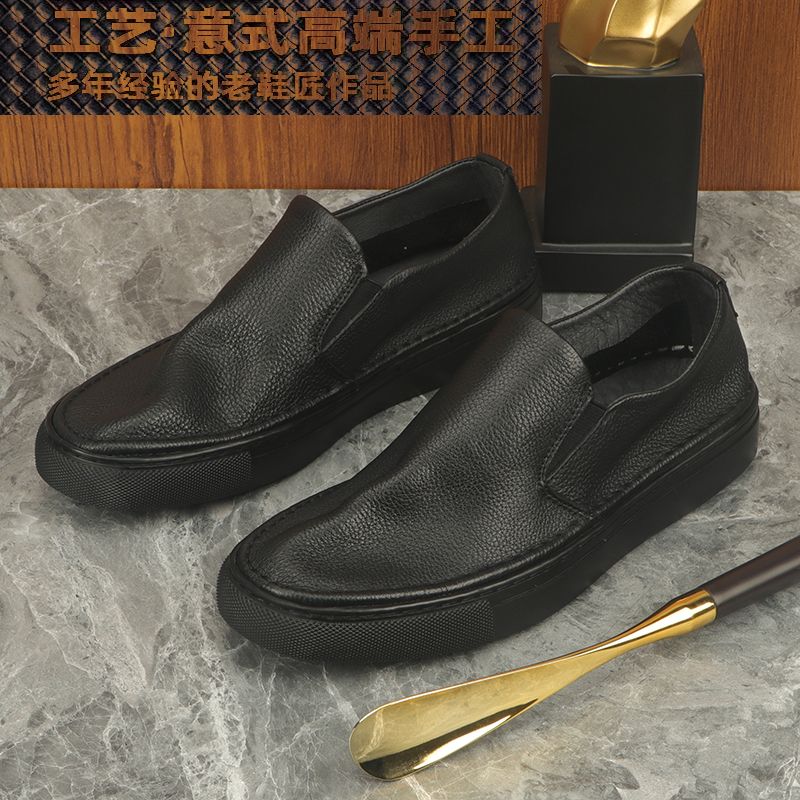 外贸新款牛皮真皮软底鞋男超软一脚蹬单层透气真休闲复古板鞋皮鞋