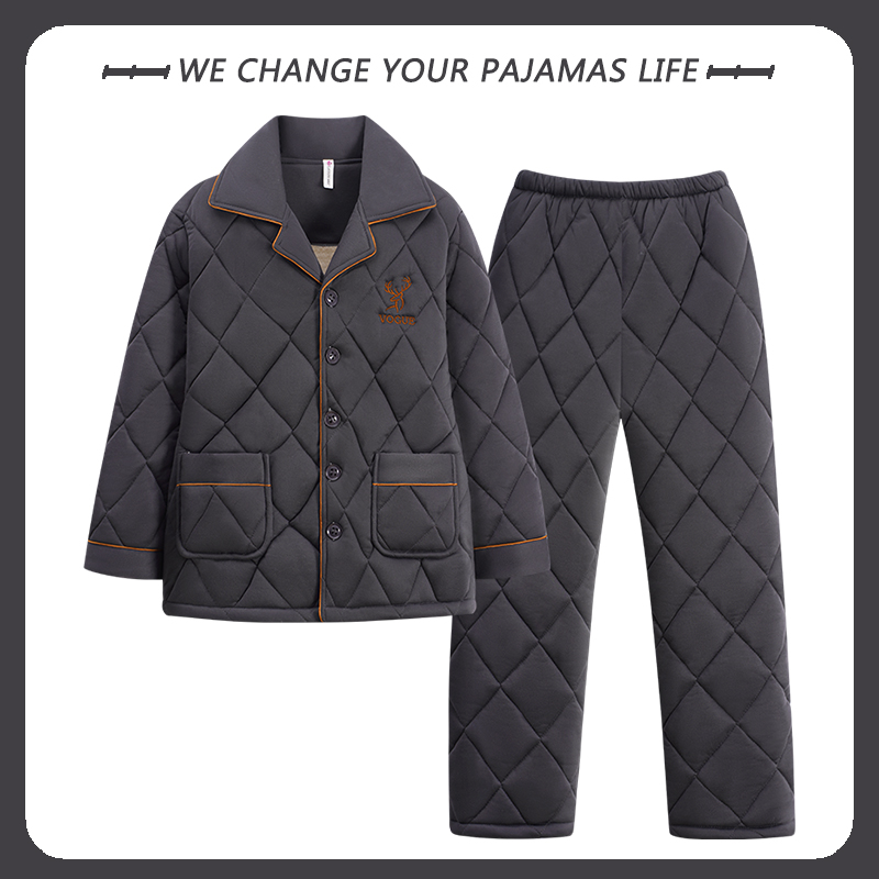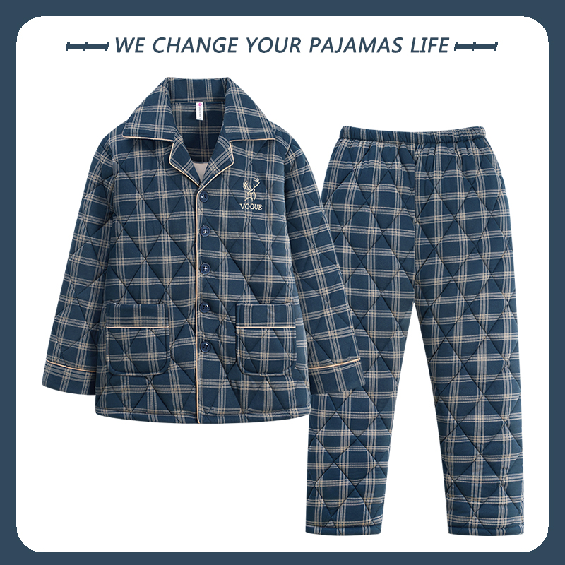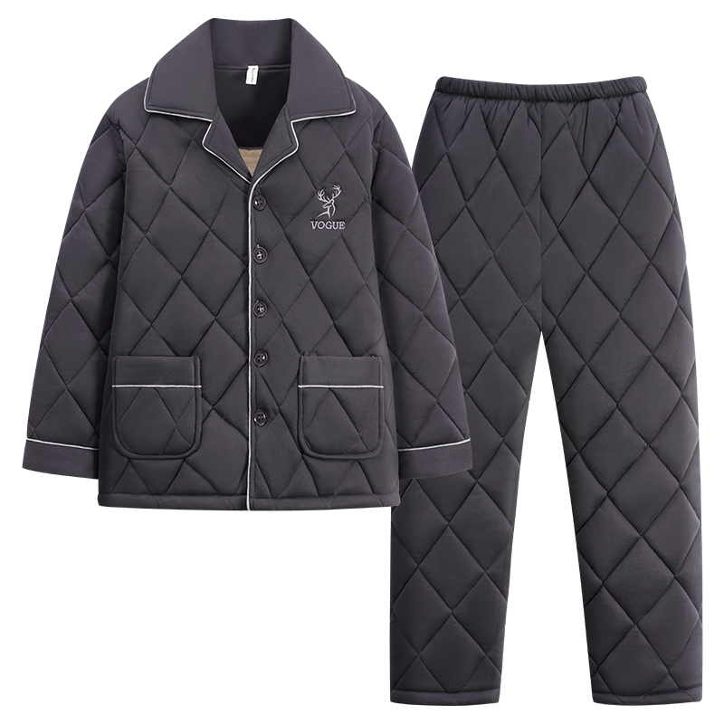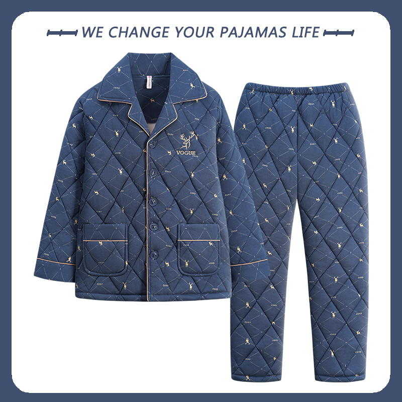 纯棉三层加厚夹棉冬季男士睡衣棉袄秋冬款加肥大码居家服两件套装