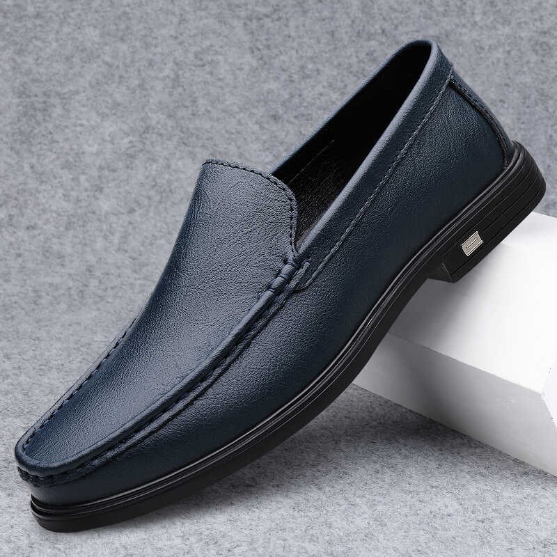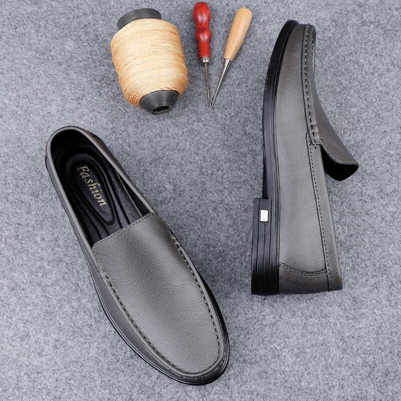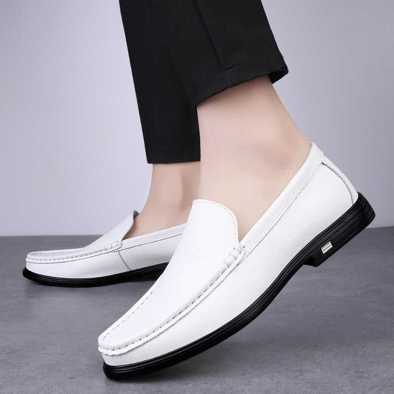 夏季皮鞋男2025新款商务休闲白色豆豆鞋透气软底一脚蹬大码男鞋