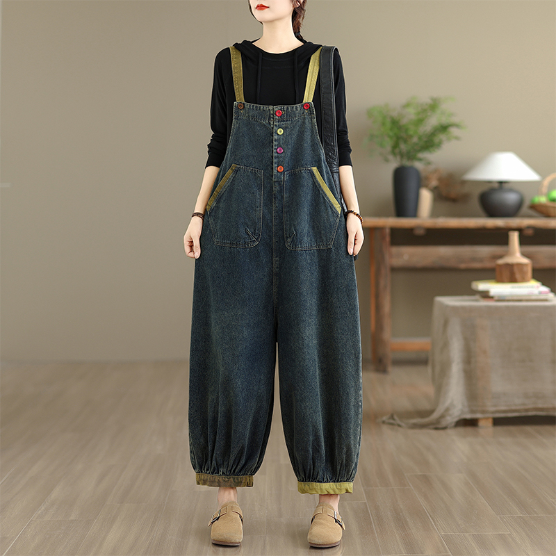 秋季新款大码文艺休闲牛仔九分背带裤女胖妹妹宽松显瘦百搭哈伦裤